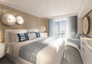 Surface : 45 m² Capacity :up to 2 passengers per cabin 30m² private balcony Individually-controlled air-conditioning King-size bed or twin beds Bathtub Minibar Flat screen Satellite TV Desk with stationery Ipod(TM) players Video on demand Safe Hairdryer Bath robes Satellite direct line telephone 110/220 volts outlet French bath products 24hr room service Internet acces wifi.