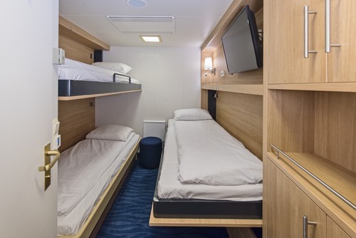 MS Polarlys was refurbished in 2016 and now features a modern, Arctic-inspired interior. On board are three different restaurants, the Multe bakery and ice cream bar, a sauna∘ and fitness room. Out on deck you can enjoy the view from one of our two hot tubs. We have a comfortable bar at the front of the ship where you can enjoy a nice traditional drink. The vessel also has a large compass area where you find the reception, the expedition team, conference room and shop.